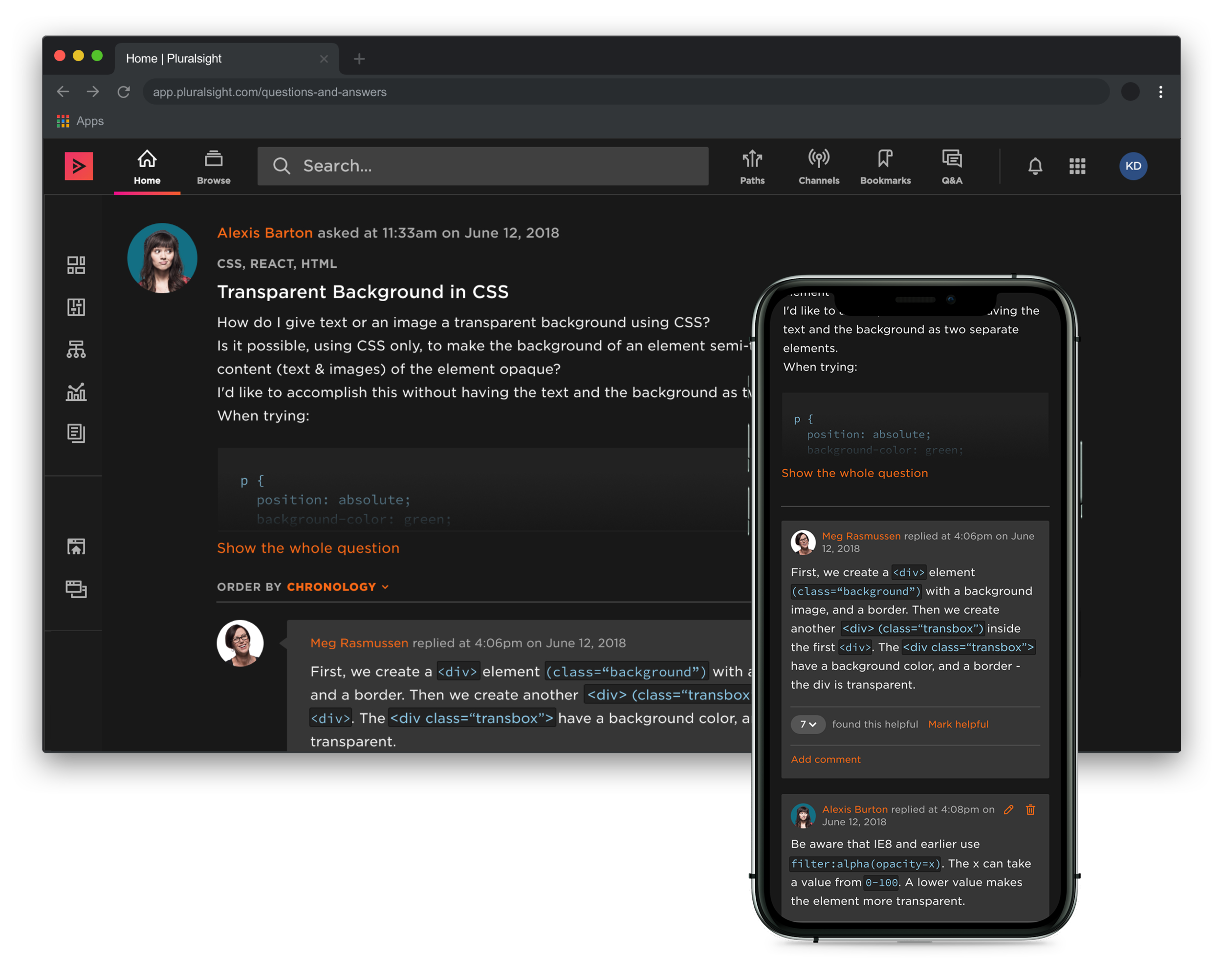 As Q&A expands, they have started to see some follow through on talks of putting the experience in other parts of the product. Though still having one central hub, the ability to ask a question from anywhere in the Pluralsight platform will be extremely valuable to the user and the success of the product.