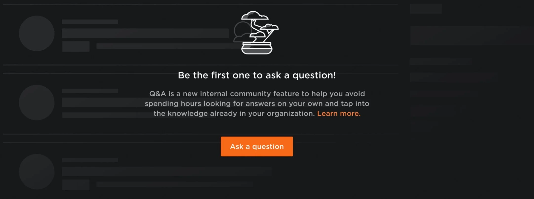 Giving new users context on what this feature can do for them, as well as, provide them with a call to action. This call to action opens the Ask a Question modal. The bonsai illustration was pulled from the design system.